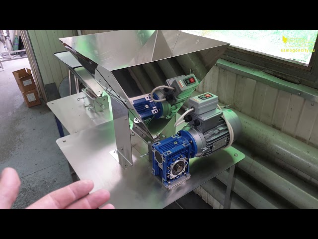 Мельница трехвалковая с регулируемым зазором на подставке с регулируемыми ножками. Выполнена из нержавеющей стали. Оснащена электромотором и увеличенным бункером для зерна на 30 килограммов. Производительность около 150 кг дробленого солода в час.